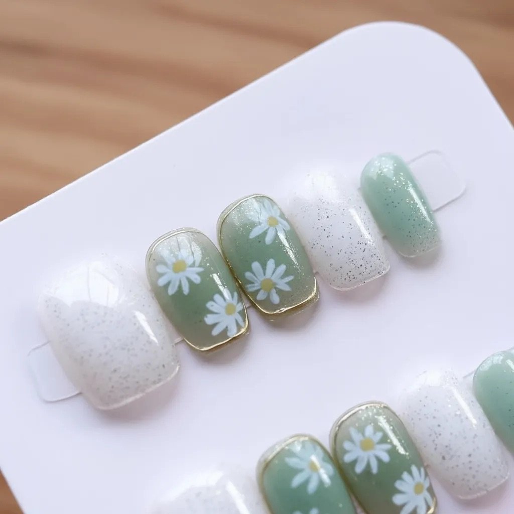 Uñas Press On reutilizables, la forma más rápida de tener tu manicure perfecta. Podrás lucir tus manos arregladas en todo momento. Son la solución perfecta para quienes buscan un look sofisticado y duradero sin tener que visitar un salón de belleza.A diferencia de las uñas postizas tradicionales, son fáciles de quitar y volver a aplicar con adhesivo para múltiples usos sin comprometer la forma o la calidad.\n\nIdeal para cualquier ocasión, desde una reunión de trabajo hasta una salida con amigos, para ir al gym, alguna ocasión especial o hasta en tu día a día como madre o esposa. Con las uñas Press On, siempre estarás lista para impresionar, sin tiempo de secado, sin dañar tus uñas.\nSobre el color: las fotos son del producto real, pero según la iluminación y la pantalla del celular o computador puede haber leves variaciones de color. Es normal. Por favor considéralo al momento de comprar. \nEl Set Incluye:\n\n24 uñas press on, en diferentes tamaños. \n24 stickers adhesivo\n1 pegamento de uñas\n2 pañitos de limpieza de alcohol\n1 palito repujador \n1 mini lima \nIndicaciones al reverso de la caja\nMás un regalito extra \n\nComo aplicar:\n\n1. Preparación de la uña: Lima ligeramente la superficie de tus uñas para mejorar la adherencia. Limpia con las toallitas empapadas de alcohol para eliminar residuos de aceite, grasa y humedad. Se recomienda bajar un poco la cutícula y hacer una buena limpieza de las manos.\n\n2. Elección de tamaño: Si el tamaño que te corresponde es intermedio entre dos tamaños, elige el tamaño más pequeño para un mejor ajuste. Puedes recortar las uñas y limarlas en la forma que desees después de la aplicación. El lado con número (parte más gruesa) indica la punta. Pega la uña con la base hacia la cutícula.\n\n3. Elige el adhesivo y presionar: Selecciona el adhesivo del tamaño correcto y pégalo en tu uña natural extendiéndolo muy bien por cada lado. Retira el film protector del adhesivo. Coloca cada uñita press-on alineándola desde la cutícula y presiona firmemente durante 10 segundos. \n\nPuedes elegir tu método favorito:\nAdhesivos: reutilízalas varias veces.\nPegamento: mayor fijación (hasta 15 días según cuidado).\nCambia de diseño para cada outfit u ocasión, sin citas ni esperas. \n\nPara remover: basta con agregar unas gotas de quitaesmalte o remoja en agua tibia 10–20 min y retirar con el palito de naranjo despegando de los lados de la uña con cuidado, con movimientos circulares hasta remover. La pega se retira completamente y se pueden volver a reutilizar.\n\nRecomendaciones\n- No las fuerces: sigue los pasos y te durarán mucho más.\n- Evita el contacto con agua las primeras 2 horas.