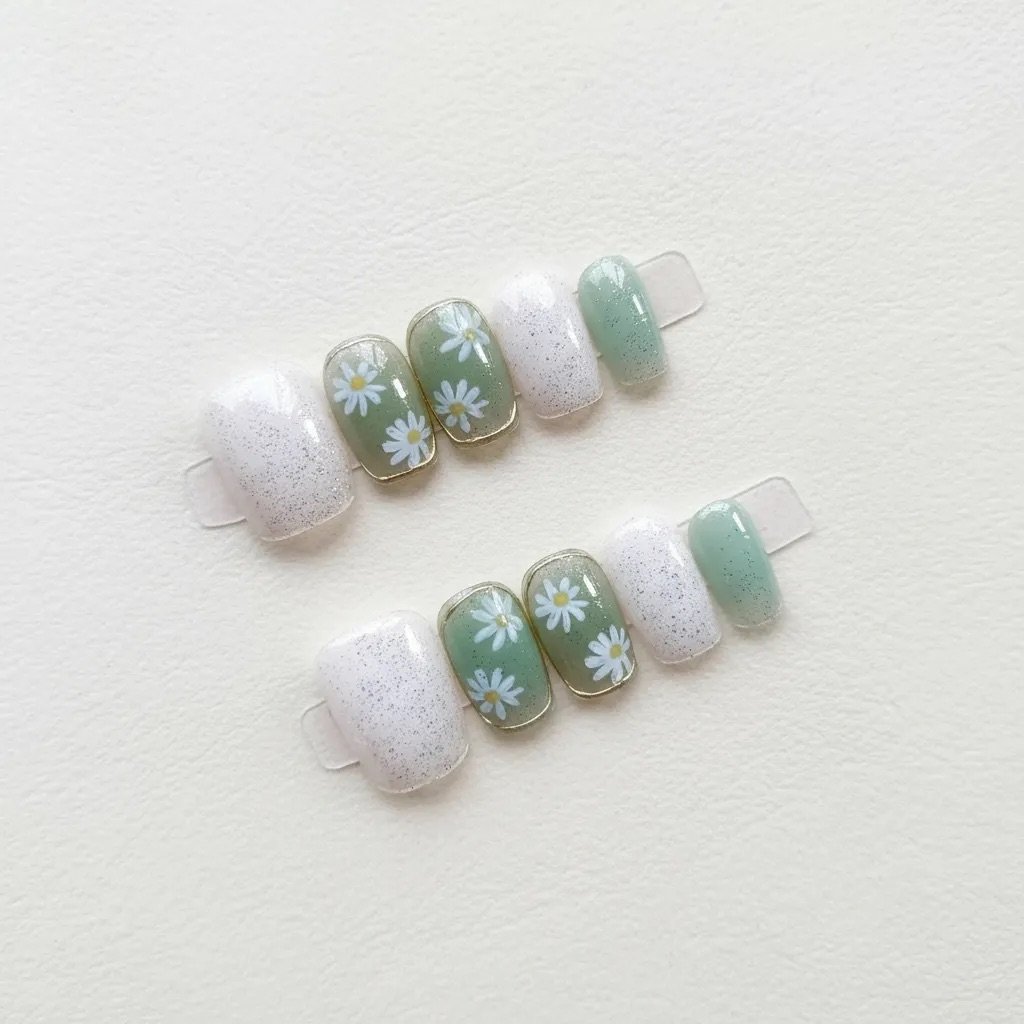 Uñas Press On reutilizables, la forma más rápida de tener tu manicure perfecta. Podrás lucir tus manos arregladas en todo momento. Son la solución perfecta para quienes buscan un look sofisticado y duradero sin tener que visitar un salón de belleza.A diferencia de las uñas postizas tradicionales, son fáciles de quitar y volver a aplicar con adhesivo para múltiples usos sin comprometer la forma o la calidad.\n\nIdeal para cualquier ocasión, desde una reunión de trabajo hasta una salida con amigos, para ir al gym, alguna ocasión especial o hasta en tu día a día como madre o esposa. Con las uñas Press On, siempre estarás lista para impresionar, sin tiempo de secado, sin dañar tus uñas.\nSobre el color: las fotos son del producto real, pero según la iluminación y la pantalla del celular o computador puede haber leves variaciones de color. Es normal. Por favor considéralo al momento de comprar. \nEl Set Incluye:\n\n24 uñas press on, en diferentes tamaños. \n24 stickers adhesivo\n1 pegamento de uñas\n2 pañitos de limpieza de alcohol\n1 palito repujador \n1 mini lima \nIndicaciones al reverso de la caja\nMás un regalito extra \n\nComo aplicar:\n\n1. Preparación de la uña: Lima ligeramente la superficie de tus uñas para mejorar la adherencia. Limpia con las toallitas empapadas de alcohol para eliminar residuos de aceite, grasa y humedad. Se recomienda bajar un poco la cutícula y hacer una buena limpieza de las manos.\n\n2. Elección de tamaño: Si el tamaño que te corresponde es intermedio entre dos tamaños, elige el tamaño más pequeño para un mejor ajuste. Puedes recortar las uñas y limarlas en la forma que desees después de la aplicación. El lado con número (parte más gruesa) indica la punta. Pega la uña con la base hacia la cutícula.\n\n3. Elige el adhesivo y presionar: Selecciona el adhesivo del tamaño correcto y pégalo en tu uña natural extendiéndolo muy bien por cada lado. Retira el film protector del adhesivo. Coloca cada uñita press-on alineándola desde la cutícula y presiona firmemente durante 10 segundos. \n\nPuedes elegir tu método favorito:\nAdhesivos: reutilízalas varias veces.\nPegamento: mayor fijación (hasta 15 días según cuidado).\nCambia de diseño para cada outfit u ocasión, sin citas ni esperas. \n\nPara remover: basta con agregar unas gotas de quitaesmalte o remoja en agua tibia 10–20 min y retirar con el palito de naranjo despegando de los lados de la uña con cuidado, con movimientos circulares hasta remover. La pega se retira completamente y se pueden volver a reutilizar.\n\nRecomendaciones\n- No las fuerces: sigue los pasos y te durarán mucho más.\n- Evita el contacto con agua las primeras 2 horas.