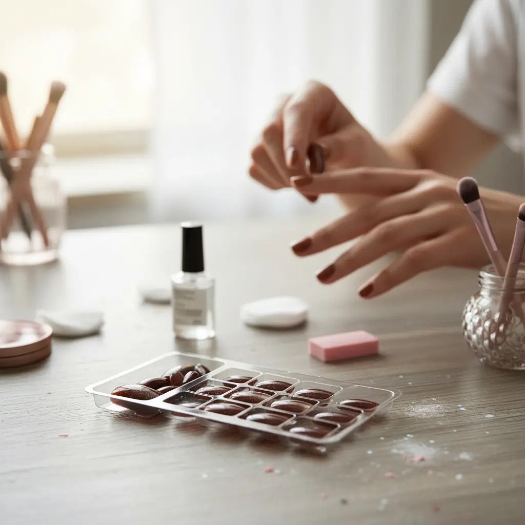 Uñas Press On reutilizables, la forma más rápida de tener tu manicure perfecta. Podrás lucir tus manos arregladas en todo momento. Son la solución perfecta para quienes buscan un look sofisticado y duradero sin tener que visitar un salón de belleza.A diferencia de las uñas postizas tradicionales, son fáciles de quitar y volver a aplicar con adhesivo para múltiples usos sin comprometer la forma o la calidad.\n\nIdeal para cualquier ocasión, desde una reunión de trabajo hasta una salida con amigos, para ir al gym, alguna ocasión especial o hasta en tu día a día como madre o esposa. Con las uñas Press On, siempre estarás lista para impresionar, sin tiempo de secado, sin dañar tus uñas.\nSobre el color: las fotos son del producto real, pero según la iluminación y la pantalla del celular o computador puede haber leves variaciones de color. Es normal. Por favor considéralo al momento de comprar. \nEl Set Incluye:\n\n24 uñas press on, en diferentes tamaños. \n24 stickers adhesivo\n1 pegamento de uñas\n2 pañitos de limpieza de alcohol\n1 palito repujador \n1 mini lima \nIndicaciones al reverso de la caja\nMás un regalito extra \n\nComo aplicar:\n\n1. Preparación de la uña: Lima ligeramente la superficie de tus uñas para mejorar la adherencia. Limpia con las toallitas empapadas de alcohol para eliminar residuos de aceite, grasa y humedad. Se recomienda bajar un poco la cutícula y hacer una buena limpieza de las manos.\n\n2. Elección de tamaño: Si el tamaño que te corresponde es intermedio entre dos tamaños, elige el tamaño más pequeño para un mejor ajuste. Puedes recortar las uñas y limarlas en la forma que desees después de la aplicación. El lado con número (parte más gruesa) indica la punta. Pega la uña con la base hacia la cutícula.\n\n3. Elige el adhesivo y presionar: Selecciona el adhesivo del tamaño correcto y pégalo en tu uña natural extendiéndolo muy bien por cada lado. Retira el film protector del adhesivo. Coloca cada uñita press-on alineándola desde la cutícula y presiona firmemente durante 10 segundos. \n\nPuedes elegir tu método favorito:\nAdhesivos: reutilízalas varias veces.\nPegamento: mayor fijación (hasta 15 días según cuidado).\nCambia de diseño para cada outfit u ocasión, sin citas ni esperas. \n\nPara remover: basta con agregar unas gotas de quitaesmalte o remoja en agua tibia 10–20 min y retirar con el palito de naranjo despegando de los lados de la uña con cuidado, con movimientos circulares hasta remover. La pega se retira completamente y se pueden volver a reutilizar.\n\nRecomendaciones\n- No las fuerces: sigue los pasos y te durarán mucho más.\n- Evita el contacto con agua las primeras 2 horas.