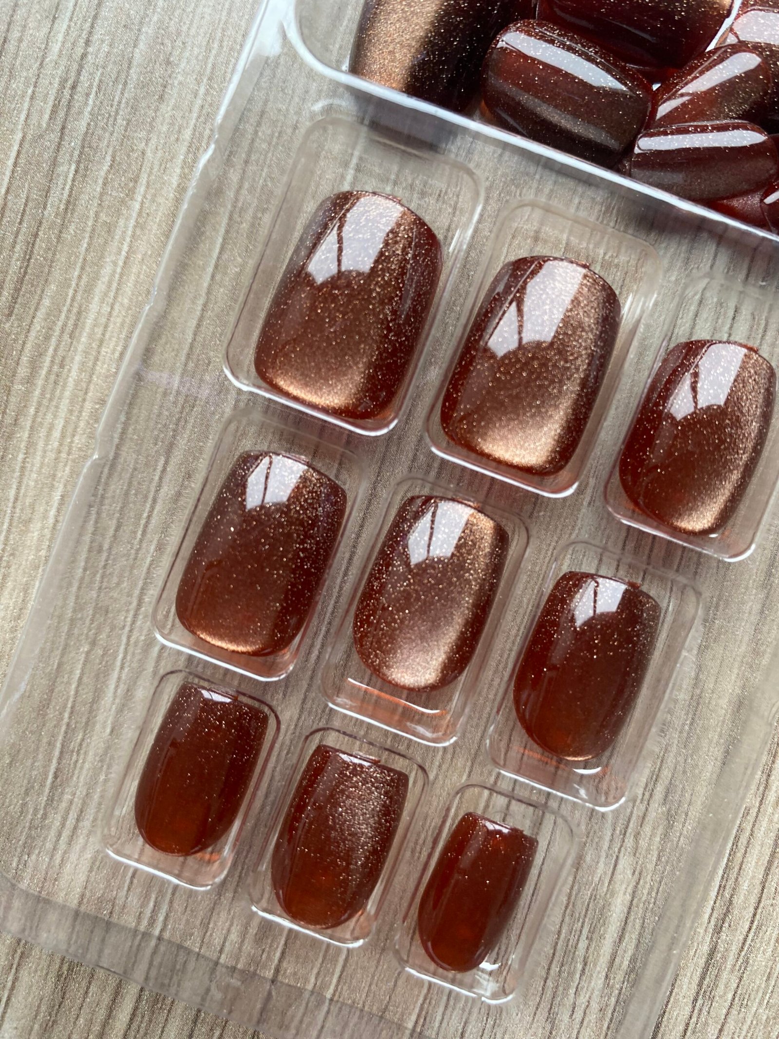 Uñas Press On Adhesivas 24pcs Ojo De Gato