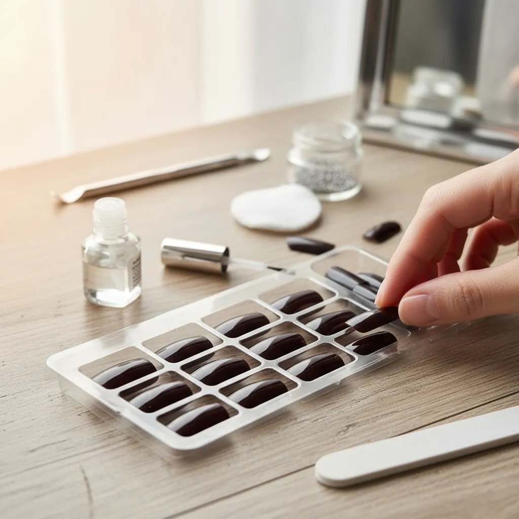 Uñas Press On reutilizables, la forma más rápida de tener tu manicure perfecta. Podrás lucir tus manos arregladas en todo momento. Son la solución perfecta para quienes buscan un look sofisticado y duradero sin tener que visitar un salón de belleza.A diferencia de las uñas postizas tradicionales, son fáciles de quitar y volver a aplicar con adhesivo para múltiples usos sin comprometer la forma o la calidad.\n\nIdeal para cualquier ocasión, desde una reunión de trabajo hasta una salida con amigos, para ir al gym, alguna ocasión especial o hasta en tu día a día como madre o esposa. Con las uñas Press On, siempre estarás lista para impresionar, sin tiempo de secado, sin dañar tus uñas.\nSobre el color: las fotos son del producto real, pero según la iluminación y la pantalla del celular o computador puede haber leves variaciones de color. Es normal. Por favor considéralo al momento de comprar. \nEl Set Incluye:\n\n24 uñas press on, en diferentes tamaños. \n24 stickers adhesivo\n1 pegamento de uñas\n2 pañitos de limpieza de alcohol\n1 palito repujador \n1 mini lima \nIndicaciones al reverso de la caja\nMás un regalito extra \n\nComo aplicar:\n\n1. Preparación de la uña: Lima ligeramente la superficie de tus uñas para mejorar la adherencia. Limpia con las toallitas empapadas de alcohol para eliminar residuos de aceite, grasa y humedad. Se recomienda bajar un poco la cutícula y hacer una buena limpieza de las manos.\n\n2. Elección de tamaño: Si el tamaño que te corresponde es intermedio entre dos tamaños, elige el tamaño más pequeño para un mejor ajuste. Puedes recortar las uñas y limarlas en la forma que desees después de la aplicación. El lado con número (parte más gruesa) indica la punta. Pega la uña con la base hacia la cutícula.\n\n3. Elige el adhesivo y presionar: Selecciona el adhesivo del tamaño correcto y pégalo en tu uña natural extendiéndolo muy bien por cada lado. Retira el film protector del adhesivo. Coloca cada uñita press-on alineándola desde la cutícula y presiona firmemente durante 10 segundos. \n\nPuedes elegir tu método favorito:\nAdhesivos: reutilízalas varias veces.\nPegamento: mayor fijación (hasta 15 días según cuidado).\nCambia de diseño para cada outfit u ocasión, sin citas ni esperas. \n\nPara remover: basta con agregar unas gotas de quitaesmalte o remoja en agua tibia 10–20 min y retirar con el palito de naranjo despegando de los lados de la uña con cuidado, con movimientos circulares hasta remover. La pega se retira completamente y se pueden volver a reutilizar.\n\nRecomendaciones\n- No las fuerces: sigue los pasos y te durarán mucho más.\n- Evita el contacto con agua las primeras 2 horas.»