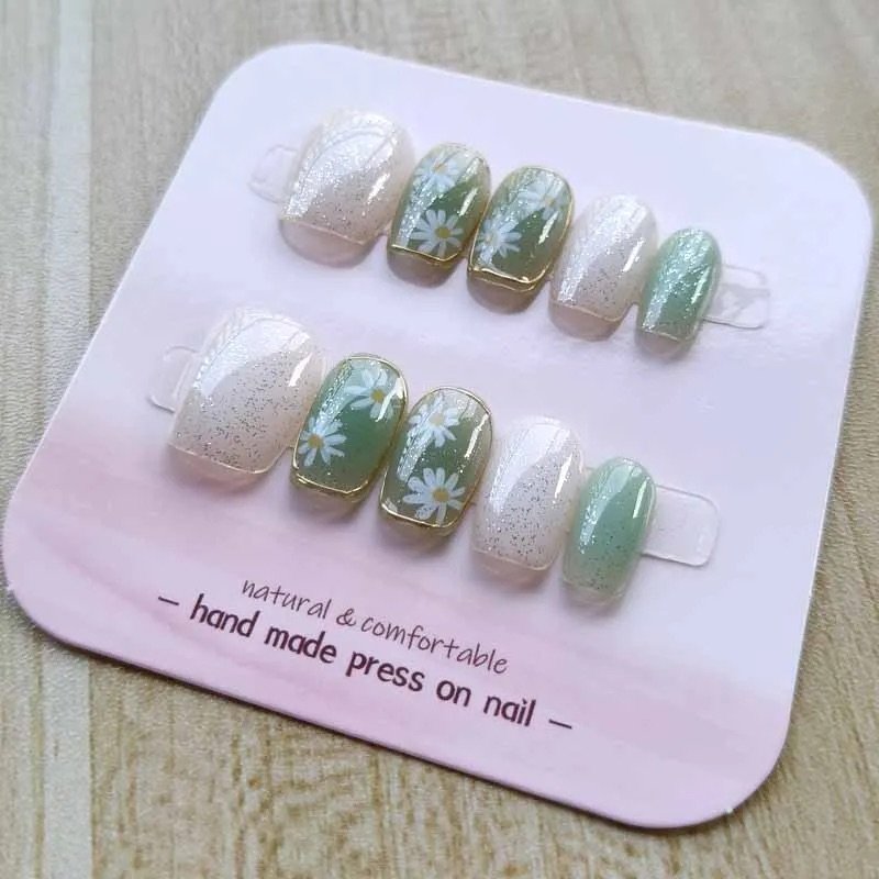 Limpia bien tus uñas antes de aplicar. Elige la talla que mejor se ajuste a cada dedo — si dudas, quédate con la más pequeña. Presiona firmemente por 30 segundos. Evita el agua las primeras 2 horas. Para retirarlas, remoja en agua tibia unos minutos.